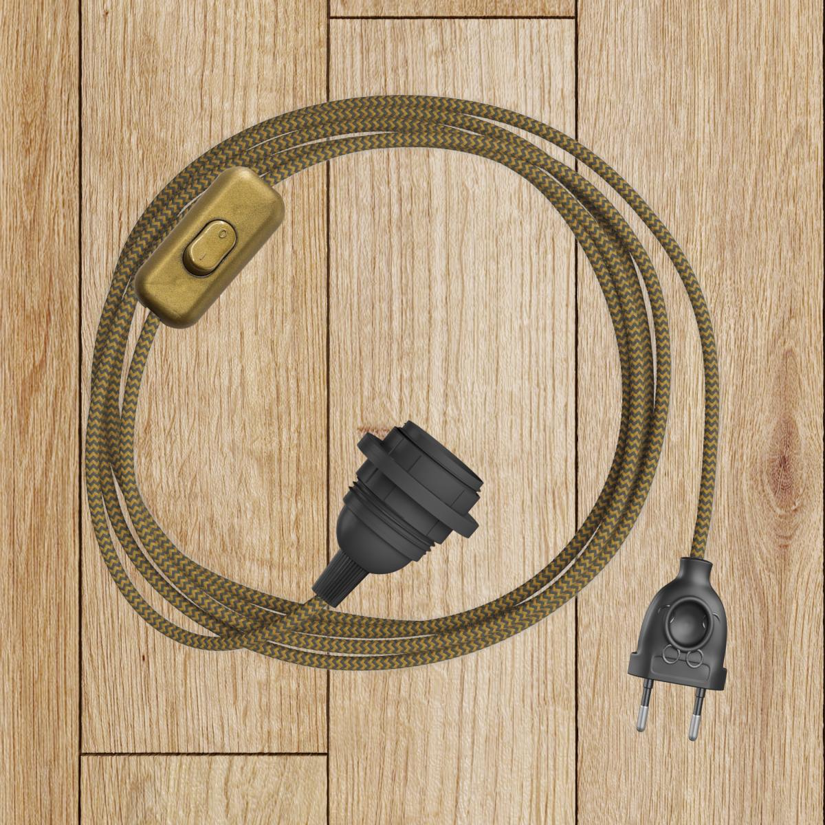 Câble textile : 2.64mt. [XZ2RZ27] Câble textile Miel doré et gris anthracite coton - L'Original Creative-Cables - RZ27 rond 2x0,75mm / 3x0,75mm - N° of cores: 2x0.75