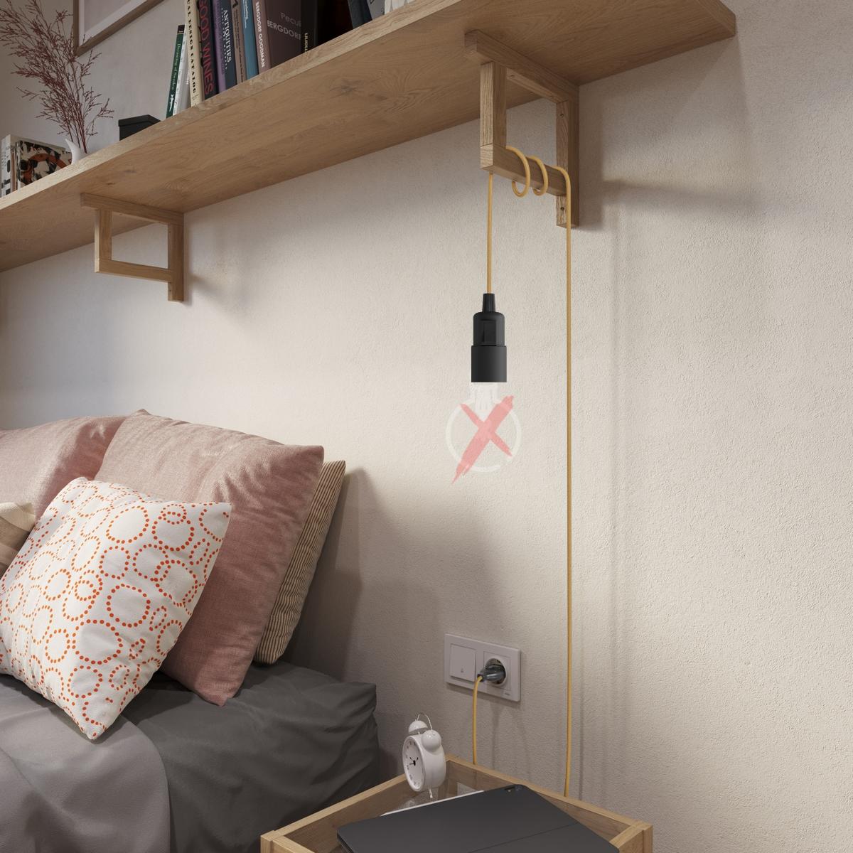 Lampenfassung : 1X [KPL27PNLINB] Thermoplastisches E27-Lampenfassungs-Kit mit Kippschalter - Schwarz